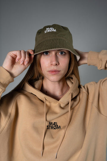 Switch up your style in an instant. This essential bucket hat offers two distinct looks in one, crafted from comfortable 100% cotton. Choose the understated cool of the neutral beige side, featuring the minimalist printed Ø symbol for a subtle statement. Feeling bolder? Flip it to the classic olive green, showcasing the crisp printed Maelstrom logo front and center. Breathable, versatile, and effortlessly stylish – it's the ultimate accessory for sun protection and adapting your streetwear look on the go.